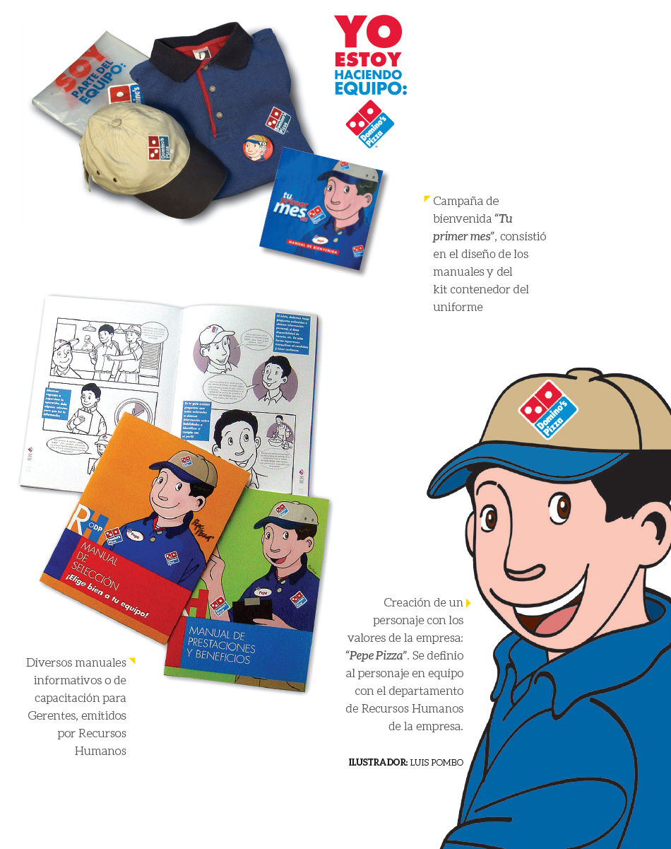 Rediseño de la revista de comunicación interna para los colaboradores de Domino‘s Pizza México. En 2004 cambiamos el formato de manera radical a una estructura de periódico; hacia el 2011 se regreso a las dimensiones de revista.